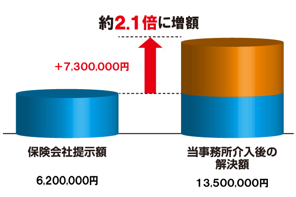 弁護士が交渉した結果、最終的に約400万円で示談解決となりました。保険会社提示額の約3.3倍に増額したことになります。